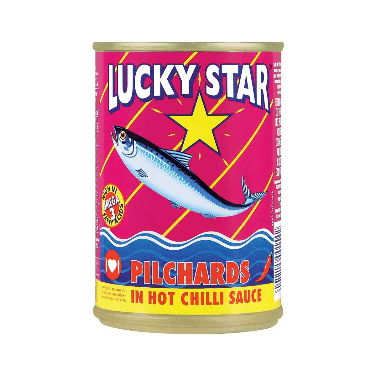 Pilchards à la sauce tomate piquante en conserve- #DESCRIPTION & UTILISATION# DESCRIPTION : Les sardines préférées d'Afrique du Sud depuis 1959 ! Avec leur sauce tomate acidulée, les pilchards LUCKY STAR ont toujours été reconnus pour leur qualité supérieure et constante.