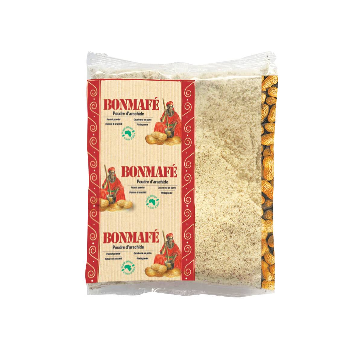 UTILISATION : La poudre d'arachide BONMAFE entre dans la préparation de nombreuses spécialités d'Afrique de l'Ouest. Elle peut être cuisinée comme une sauce ou bien venir en assaisonnement d'un plat. Le riz à la poudre d'arachide par exemple est consommé dans de nombreux pays d'Afrique Subsaharienne. - #CARACTERISTIQUES PRODUITS# INGREDIENTS : Arachides non-UE
