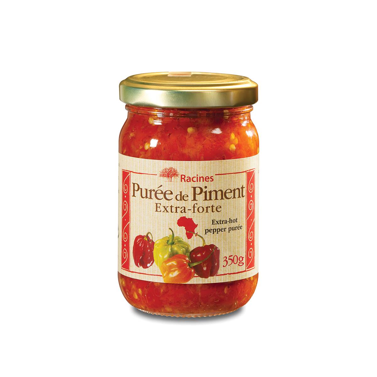 Préparation à base de piment - #DESCRIPTION & UTILISATION# DESCRIPTION : La purée de piment occupe une place importante dans la cuisine africaine. La purée de piment extra-forte RACINES, relèvera de tout son caractère, tous vos plats à base de viande ou de légumes.