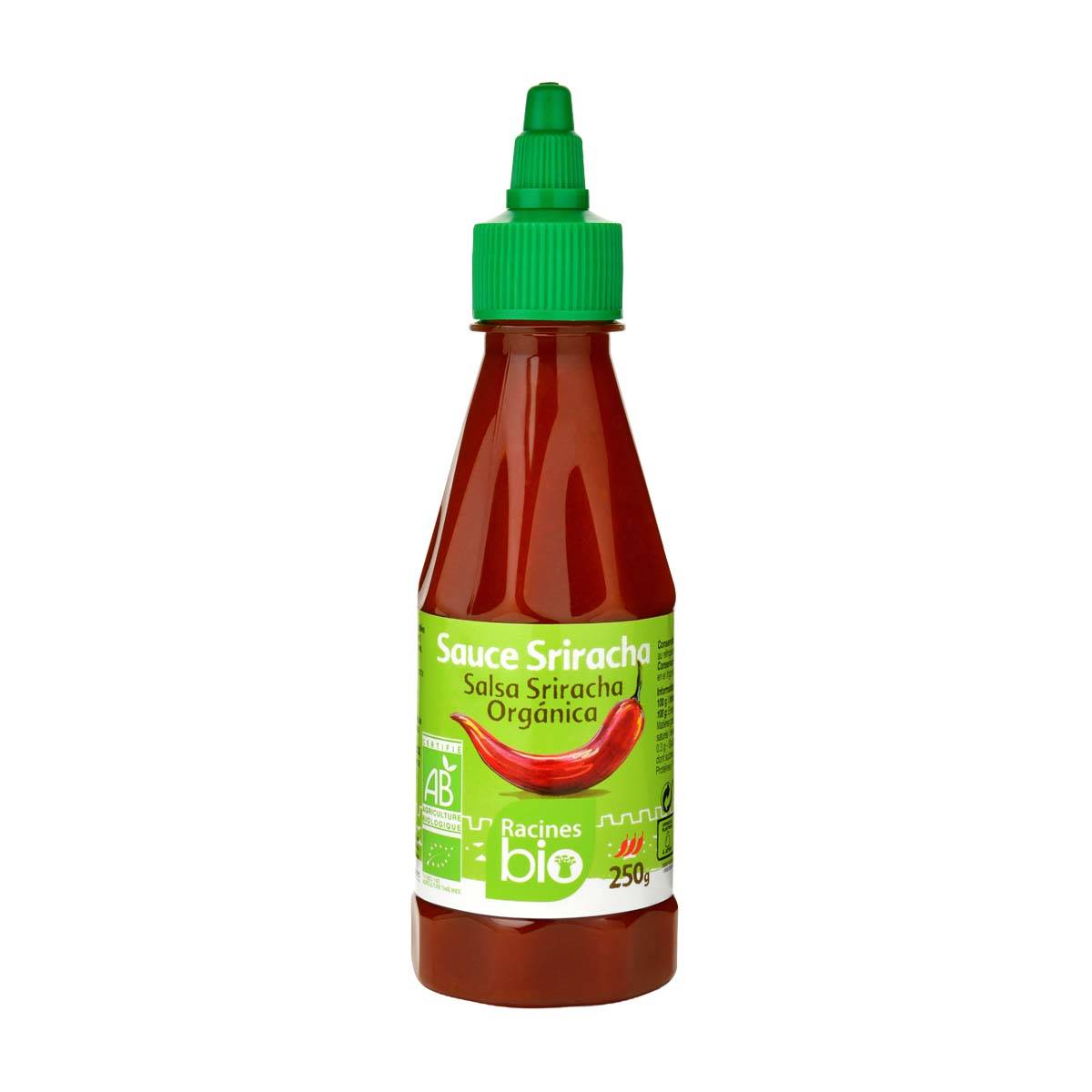 Sauce au piment biologique- #DESCRIPTION & UTILISATION# DESCRIPTION : La sauce Piment Sriracha RACINES BIO : le ketchup asiatique, en version pimentée! La sauce Piment Sriracha est une sauce Thaïlandaise à base de pâte de piments, de vinaigre distillé, d'ail et de sucre.